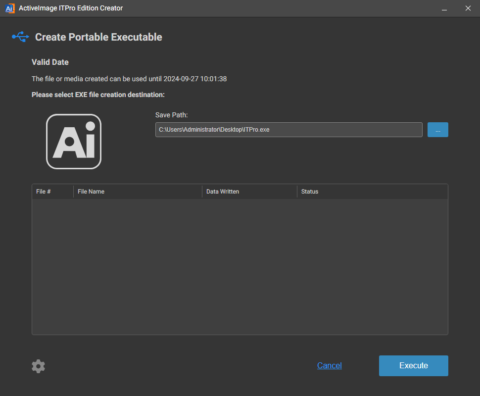 경로와 파일명을 지정한 뒤 [Execute]를 클릭하십시오.