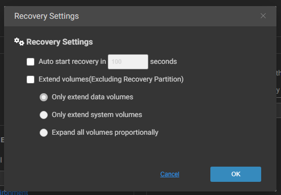 Expand all volumes proportionally 依比例延伸所有磁碟區。不會套用到系統磁碟區前方的磁碟區。
